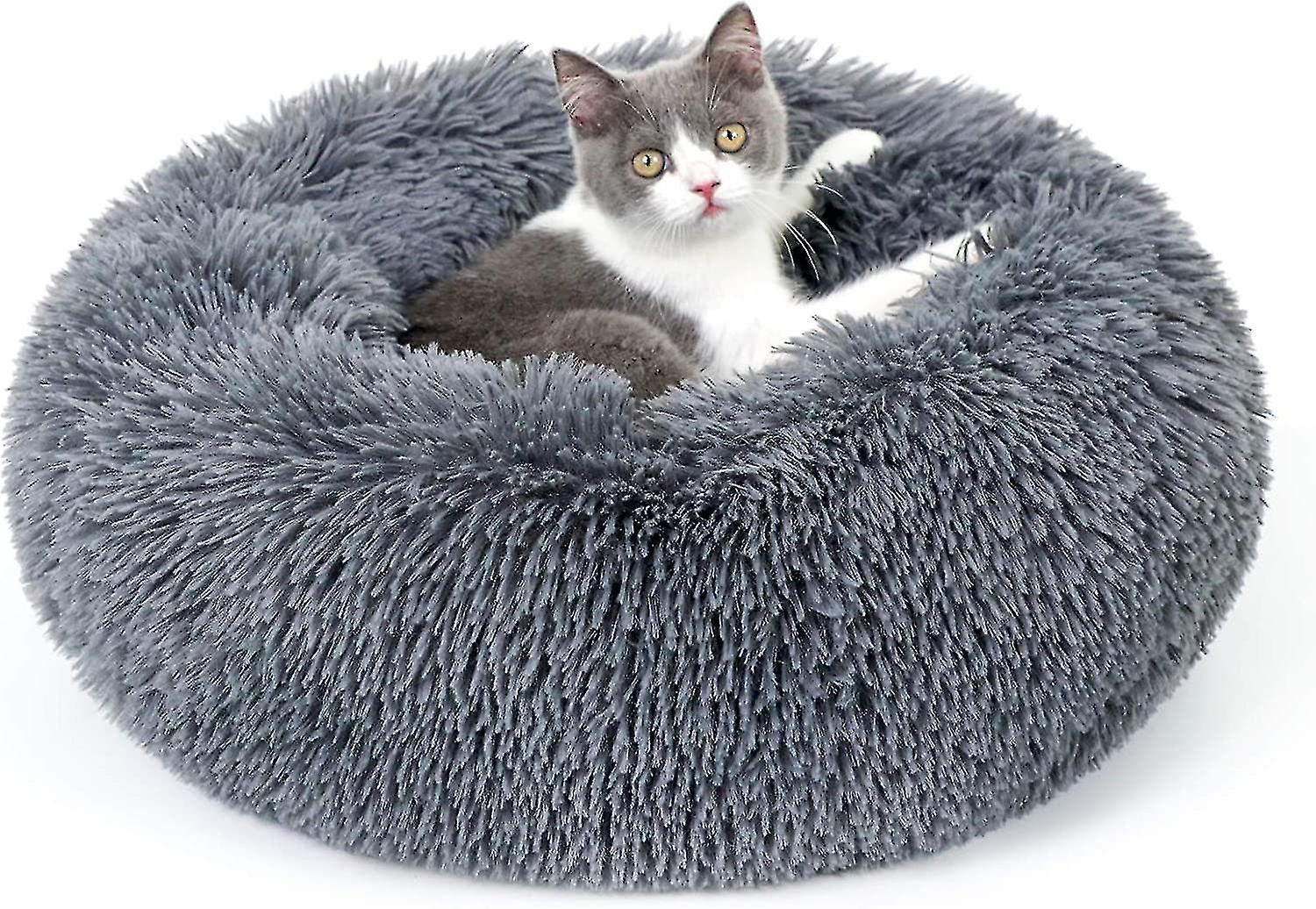 Cat Bed For Indoor Cats, 20 X 20 Inches Fluffy Round Self Warming Calming Soft Plush