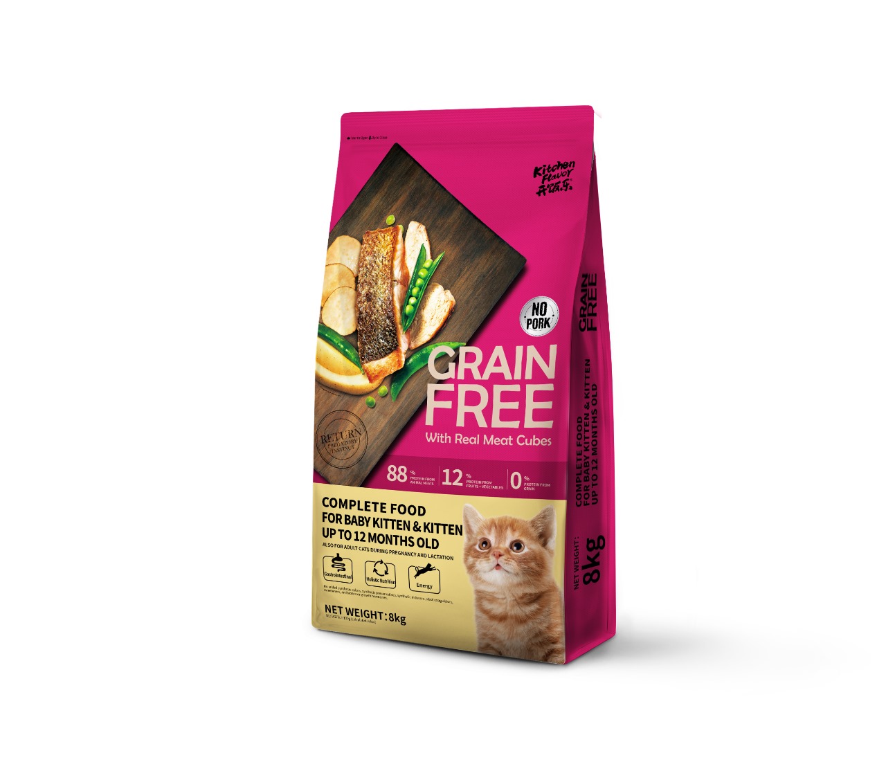 Kitchen Flavor Grain Free Cat Food With Real Meat Cubes for Baby Kitten & Kitten 8kg